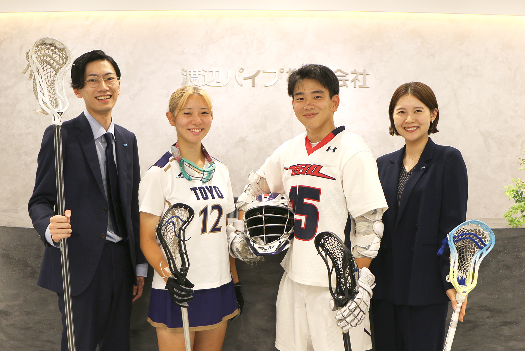 渡辺パイプは2024年から、日本ラクロス協会(JLA)とパートナー契約を締結し、全国7地区で開催される学生ラクロスリーグの大会を支援しています。日本国内のラクロス競技人口は約11万人にのぼり、その多くが学生です。男子代表は2022年の国際大会で銅メダルを獲得するなど、競技としての認知度や人気も着実に高まっています。