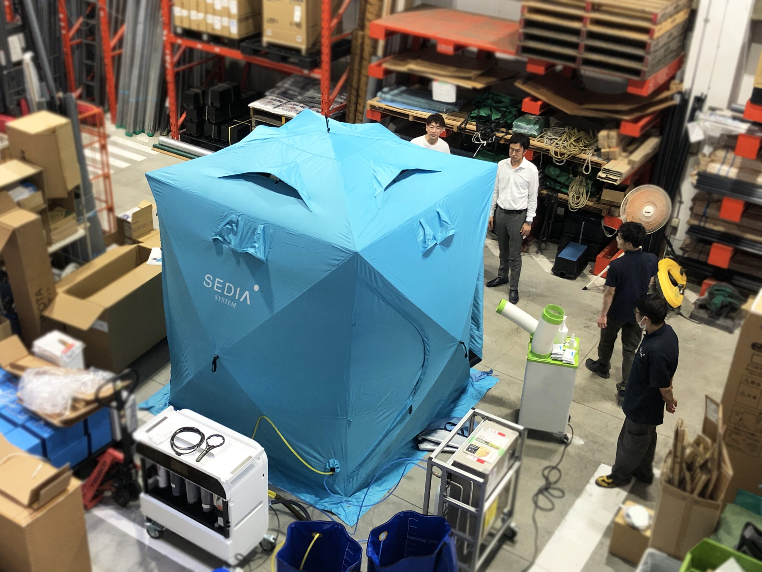上下水道に依存せず、使用した水の98%以上を再生して循環利用することを可能にするポータブル水再生システム。シャワーキットと組み合わせることで、100Lの水で約100人が入浴できる水循環型シャワーとして使用できます。水循環型シャワーは2人作業の場合、約15分で設置可能で、地震や風水害などの発災時にもすぐに使うことができます。2024年の能登半島地震においては断水が長期化した石川県の6市町(珠洲市、輪島市、能登町、穴水町、志賀町、七尾市)に約100台が展開されました。シャワーキットは個室式であるため、自衛隊入浴支援などの従来手段の利用が難しい災害時要配慮者(高齢者、障害者、乳幼児、妊産婦など)であっても比較的容易に使うことができます。また、平時にはマラソン大会や自治体主催の防災訓練といった屋外イベントで活用されています。