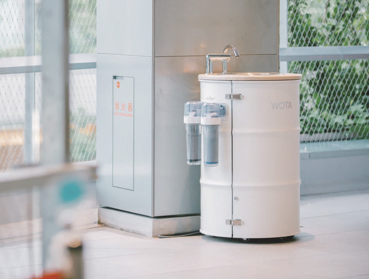 上下水道に依存せず、使用した水の98%以上を再生して循環利用することを可能にする水循環型手洗いスタンド。20Lの水で約500回の手洗いが可能であり、スマートフォン除菌機能も備えています。電源があれば平常時・非常時を問わず使用可能なフェーズフリーの手洗いスタンドとして、日本全国の公共施設や商業施設に導入されています。2024年の能登半島地震においては断水が長期化した石川県の6市町(珠洲市、輪島市、能登町、穴水町、志賀町、七尾市)に約200台が展開され、避難所だけでなく、特に衛生環境整備が必要な病院や介護施設等でも活用されました。