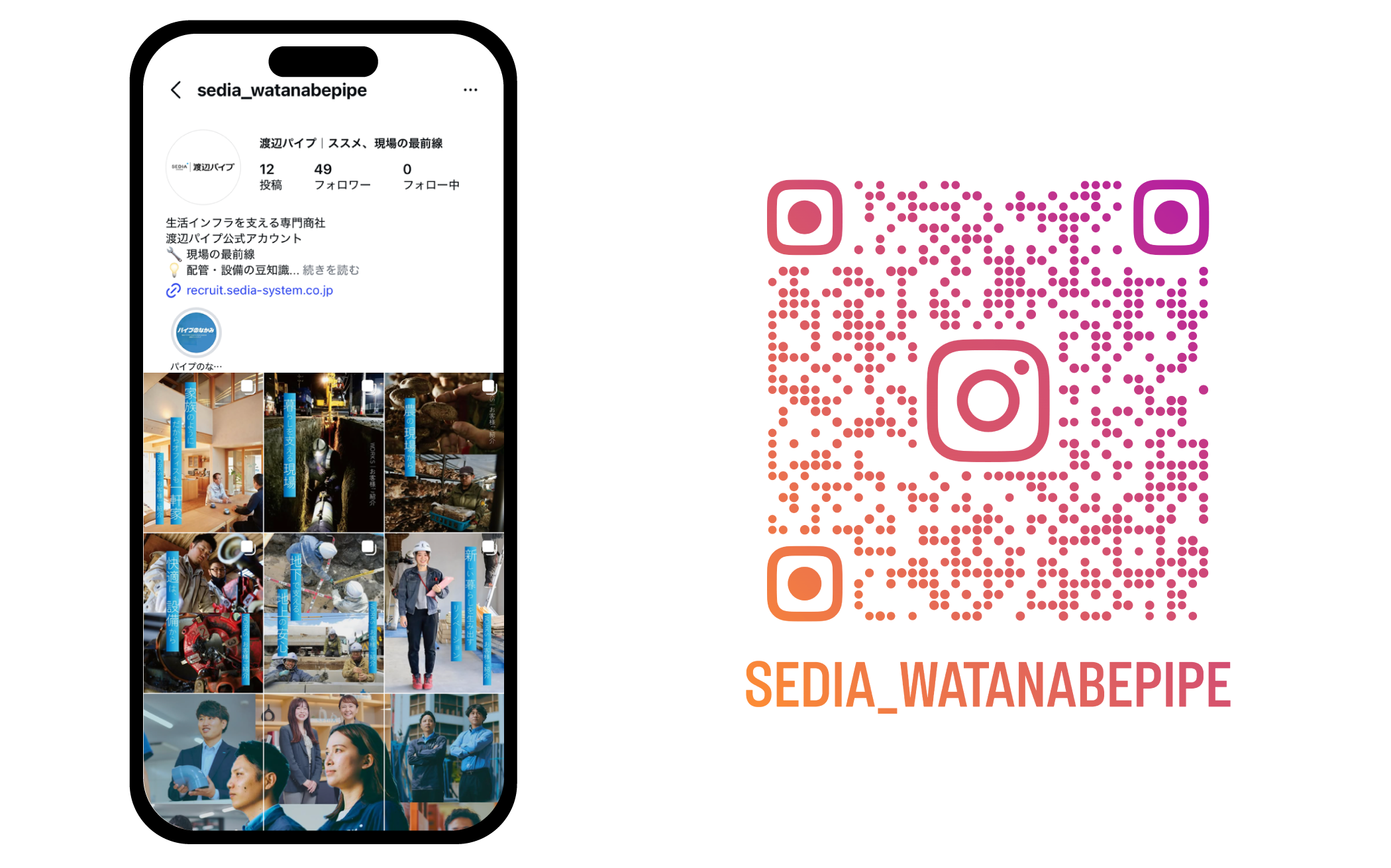 Instagramでは、配管や設備に関する豆知識、渡辺パイプで働く社員や職場環境の紹介、さらには現場での取り組みや社員一人ひとりの想いなどを発信してまいります。