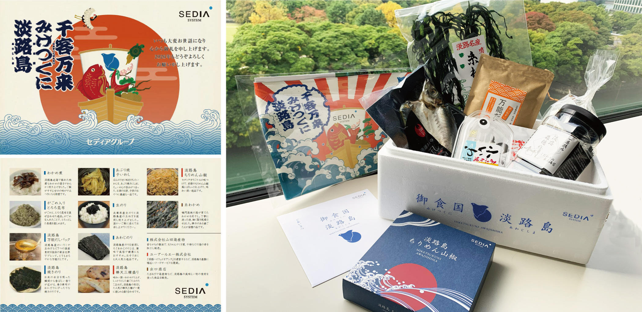 (渡辺パイプのルーツである淡路島の歴史と、渡辺パイプの歩みを伝えるため、「御食国(みけつくに)淡路島」をコンセプトにしたお歳暮)